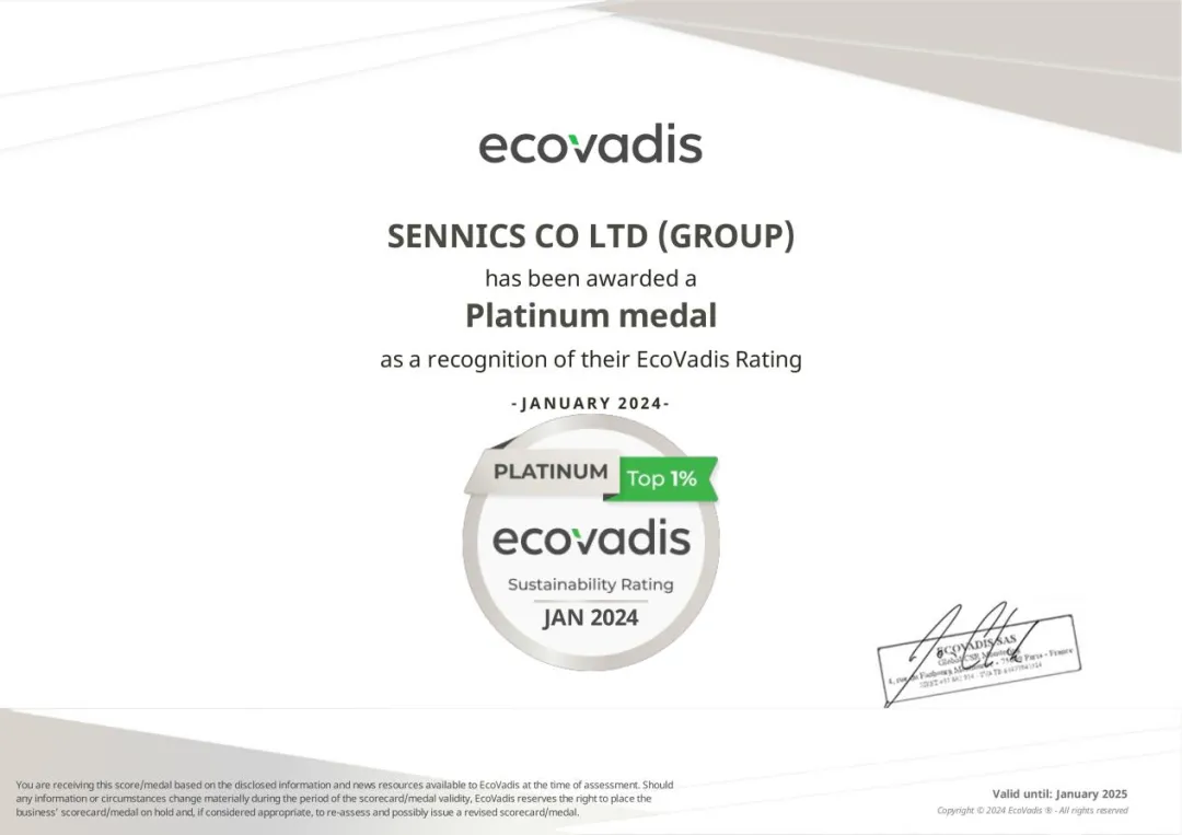 为了强化其绿色科技品牌基因,圣奥化学成立可持续发展委员会,建立绿色供应链机制,推动上下游合作伙伴践行绿色发展理念,承诺提前十年完成碳中和目标,并将责任制造纳入“SCI-MAN(科学制造) 2030”可持续发展倡议。圣奥化学连续十年主动对外披露可持续发展报告,加入责任关怀、TfS全球倡议等国际责任阵营,发布可持续供应链愿景。在EcoVadis企业社会责任评级中,圣奥化学荣获最高“铂金”级别,位列全球参评企业前1%。此外,圣奥化学还积极参与CDP(碳披露项目)等国际评级、获取ISCC PLUS(国际可持续发展与碳认证)等权威认证,让国际化成果为品牌责任背书,塑造具有全球认可度的可持续发展品牌形象。