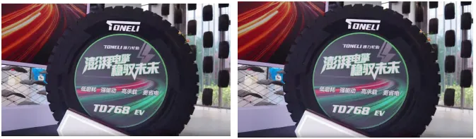活动中,通力轮胎技术副总工程师晋琦重磅发布了两款专为新能源重卡驱动轮设计的战略新品——TD768 EV与GD709 EV。