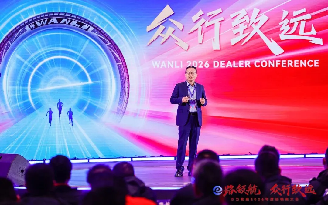 会上,万力轮胎研究总院负责人李卫国发布2026年产品规划,聚焦高端及电动产品迭代升级,优化轻卡、越野及全钢公制胎性能,为经销商提供更具市场竞争力的产品支持。
