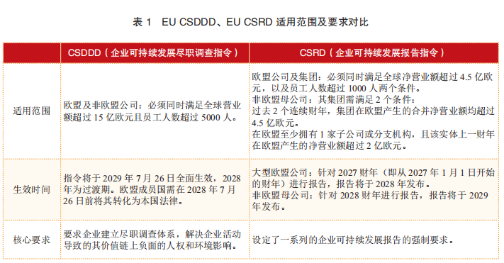 在应对EUDR、EUFLR 等产品准入法规的同时,中国企业也需关注欧盟在企业运营层面推出的两项基础性可持续发展法规的最新变化。经过漫长的谈判,欧盟立法机构于2025年12月8日就简化EU CSDDD(欧盟企业可持续发展尽职调查指令)和EU CSRD(欧盟企业可持续发展报告指令)达成了临时协议,核心思路是“聚焦头部、减轻负担”。无论是CSRD 还是CSDDD都强调关注ESG,可持续和尽职调查,简化之后的监管体系从追求全面覆盖,转向了更具针对性和务实性的新阶段。