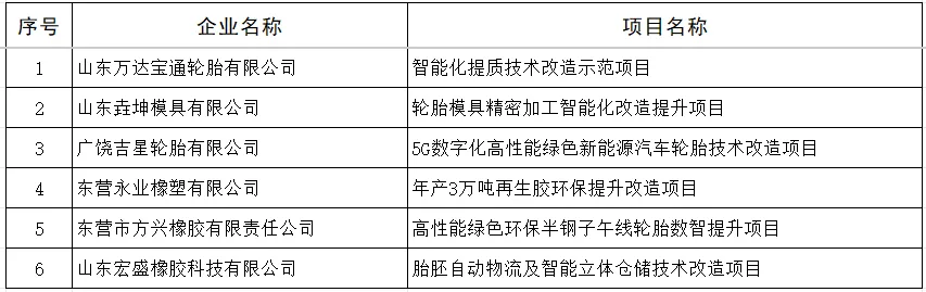 11月24日,东营市工信局公示“2025年市级第二批工业领域设备更新和技术改造拟扶持项目”,6家橡胶轮胎行业企业进入名单。