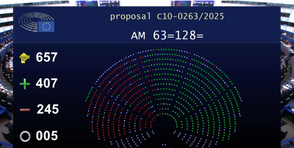 657名参与投票议员中,赞成票407名,反对票245名,弃权票5名。赞成票占比61.95%。
