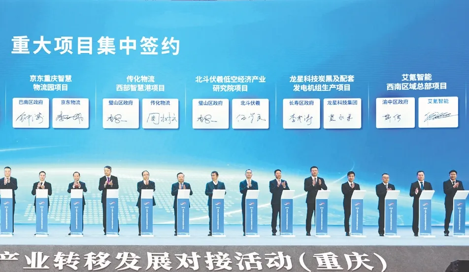 在产业转移合作项目签约仪式上,集中签约159个重点项目,合同金额超1100亿元,为重庆产业升级注入新动能。