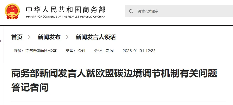 1月1日,商务部新闻发言人就欧盟碳边境调节机制有关问题答记者问。