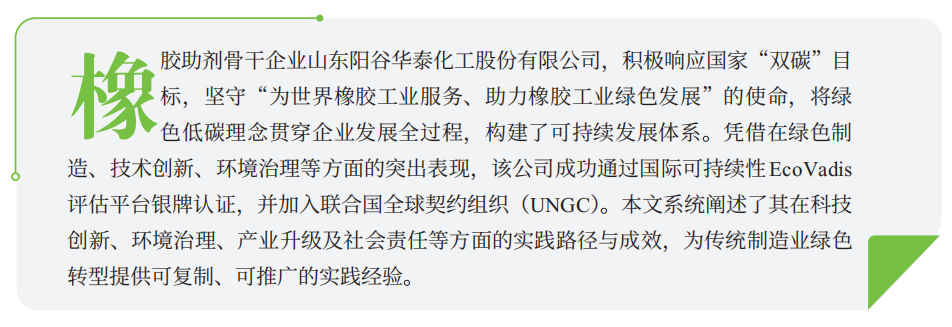 未来,阳谷华泰将继续深化绿色制造体系建设,加大绿色工艺研发投入,加快生物基新材料产业化进程,持续推进数字化、智能化转型,全力冲刺“2030碳达峰、2050 碳中和”目标,为世界橡胶工业绿色转型提供更多“华泰方案”,为中国制造高质量发展树立更坚实的行业标杆。