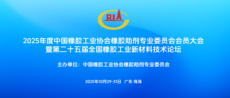 中国橡胶工业协会橡胶助剂专业委员会定于2025年10月29-31日在珠海召开“2025年度中橡协橡胶助剂专业委员会会员大会暨第二十五届全国橡胶工业新材料技术论坛”。
